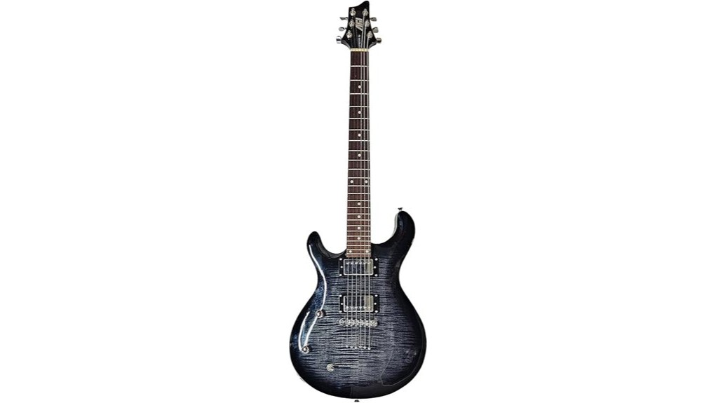 - Flame maple over basswood body offers balanced resonance, warmth, and visual appeal.