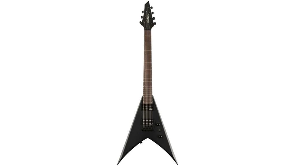 The resonant poplar body of the Jackson King V JS22 HT, anchored by a hard-tail bridge, offers a sturdy foundation for sonic exploration, much like a steadfast belief system grounds the wandering soul.