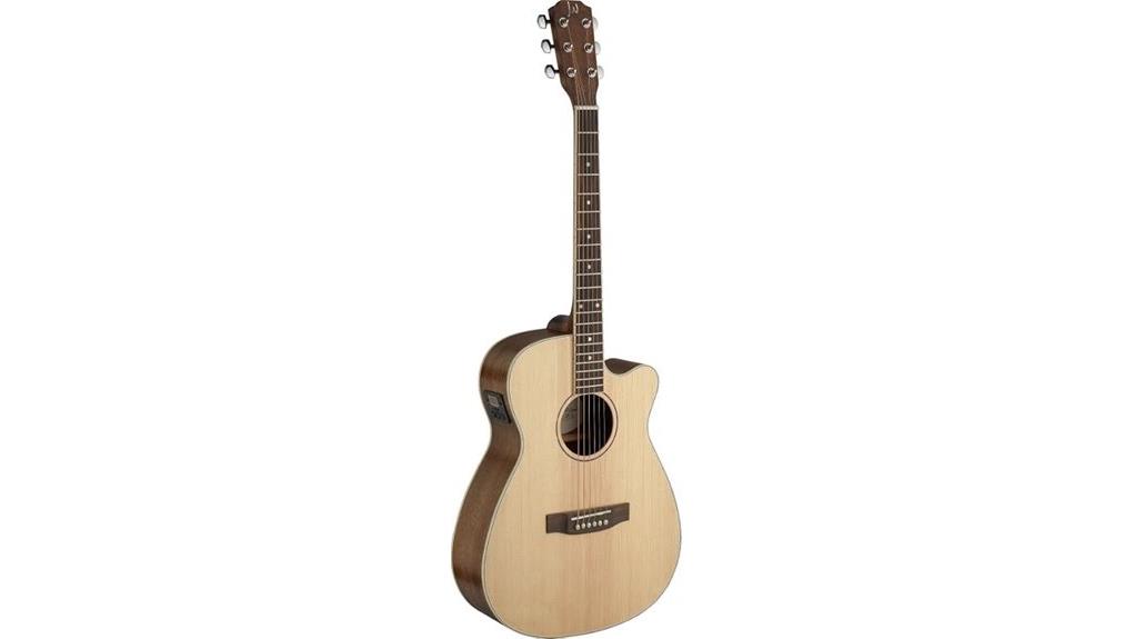 The cutaway design facilitates graceful navigation of the upper frets, enabling leaders to guide congregations through complex, melodic passages. This electronic capability serves the community, ensuring that the instrument’s sweet, pure sound reaches every ready ear, akin to a message delivered with clarity, ultimately uniting the gathered faithful in a harmonious, shared acoustic experience. Although this model is a solid choice for acoustic worship, those interested in the lower register of the frequency spectrum might consider that there are best bass guitars available for specialized roles.