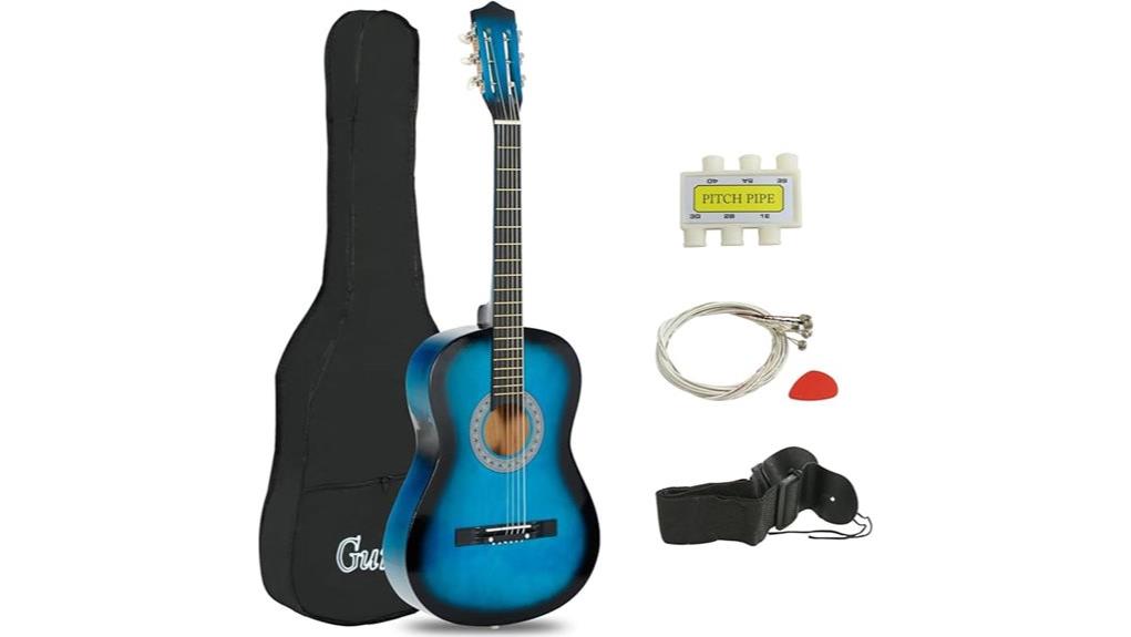 Its resonant, all-wood construction produces a warm tone, transforming simple strumming into a shared act of creation. The cutaway body shape further enhances playability by allowing easier access to the upper frets. Included accessories guarantee readiness, removing obstacles to learning. Ultimately, this guitar serves as a vessel for connection, allowing aspiring musicians to cultivate skills that enrich their communities. While this acoustic model is excellent for learning fingerstyle and chords, players seeking high-gain rock sounds might eventually want to explore the best electric guitars for beginners.