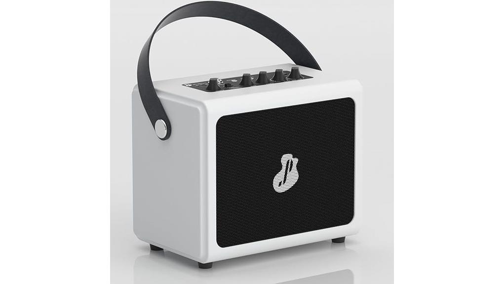 The leather handle is designed to enhance the amplifier’s portability, providing a convenient grip for travel. Its sturdy construction guarantees that users can securely transport the device for practice sessions in various locations without concern.