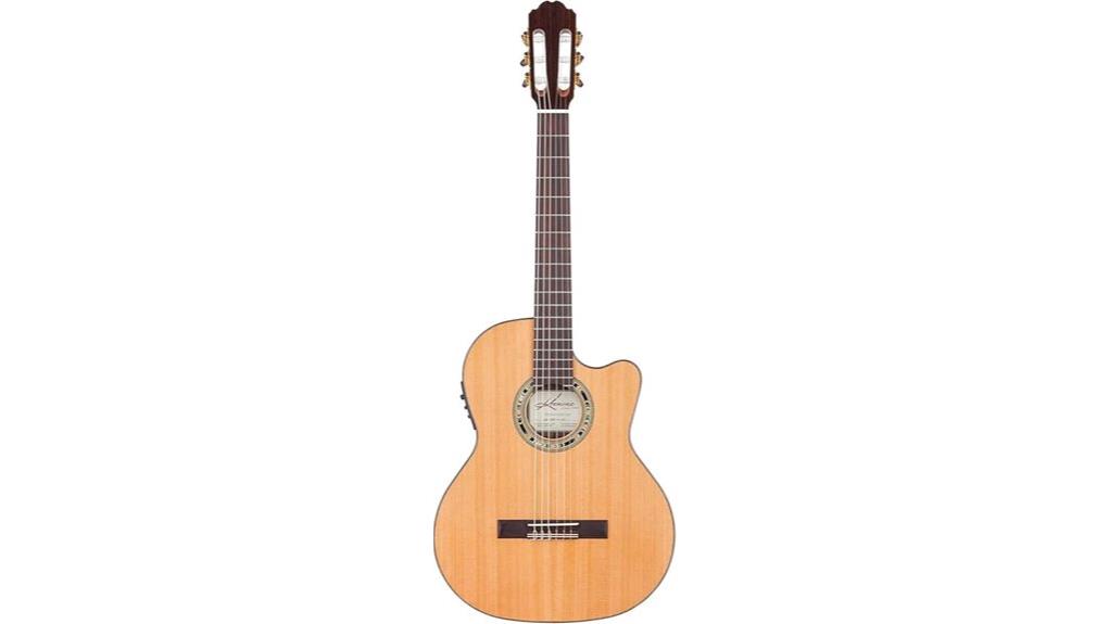 The Kremona Fiesta F65CW TLR adopts a slender, 65 mm thinline body depth, a structural choice that eliminates the physical bulk often associated with traditional classical guitars, allowing the instrument to rest against the player’s body with the ease of a familiar prayer.