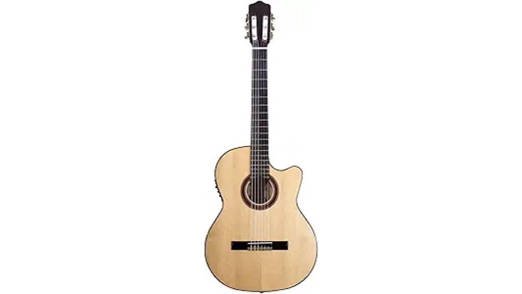 Handcrafted in the historic workshops of Kazanlak, Bulgaria, the Kremona Rosa Luna CW stands as an acoustic/electric flamenco guitar designed to bridge the earthly and the ethereal. Featuring a solid European spruce top paired with resilient Bulgarian beech back and sides, its Andalusian bracing fosters a responsive, clear tone, a reminder that inner strength requires cultivated flexibility. The Fishman Presys Blend system, utilizing an under-saddle piezo and internal microphone, offers purity in amplification, akin to speaking one’s truth with clarity. With a 650mm scale length and low neck angle, this instrument invites the player to serve the music faithfully. While it may not claim the title of one of the best acoustic guitars for every player, its specialized voice is a treasure for the flamenco enthusiast. In a crowded marketplace, identifying the best classical guitars allows for a deeper appreciation of the Rosa Luna’s unique niche.