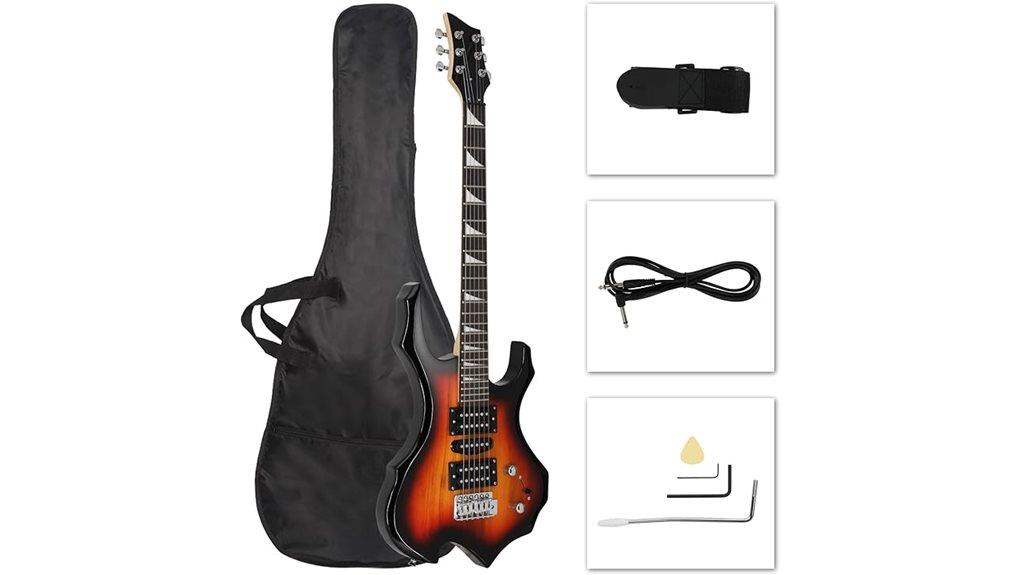 While the unique flame shape captures the eye, the ergonomic architecture of the instrument prioritizes the physical connection between player and creation. Crafted from premium basswood, the dense tonewood structure resists deformation, much like a steadfast resolve protects one’s purpose. The trimmed body perimeter, paired with a curved back plate, guarantees prolonged comfort, allowing the caretaker of music to serve others through sound without physical distraction. Furthermore, players often compare the ergonomic value of this model to the best Epiphone electric guitars for extended practice sessions. Moreover, the smooth rosewood fretboard, adorned with premium shell inlay, offers a tactile meditation, a reminder that every gentle touch, whether upon strings or souls, requires deliberate, thoughtful intention.