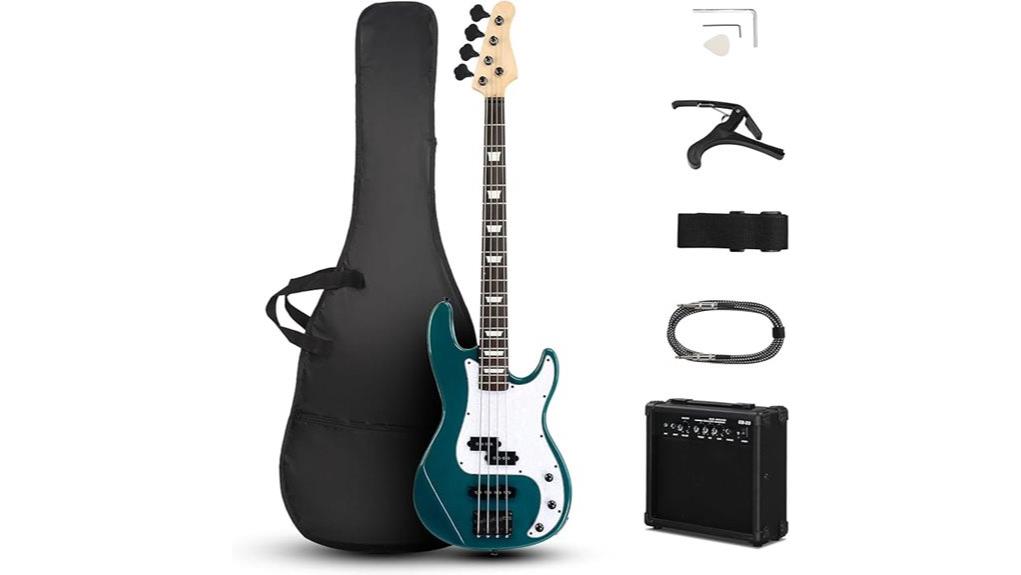 While the electronics provide the voice, the included items guarantee the musician is fully equipped to steward that sound in the physical world, providing the necessary support for the journey ahead. The durable gig bag protects the instrument, a practice in honoring the tools one is given. A reliable strap guarantees stability, allowing the player to serve the band’s rhythm without physical strain, while the upgraded cable transmits the soul of the music faithfully. For those just starting, it is worth noting that many reviews of the Ktaxon emphasize its shorter scale length. These accessories, though humble, act as essential vessels, confirming the artist’s focus remains on creating harmony, and lifting up those around them through consistent, dedicated sound. This electric bass offers a distinct contrast in sound and playability compared to best acoustic guitars, expanding the musician’s range for diverse musical expression.