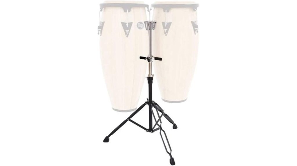 The Latin Percussion LPA653 conga stand embodies a marriage of design and functionality, as it is crafted from lightweight alloy steel with a chrome finish that signifies both strength and elegance. Its height-adjustable feature—akin to the adaptability required in life—invites musicians to explore their creative potential. With double-braced legs providing stability, this stand serves as a reminder that a solid foundation nurtures both artistic expression and community. What lies ahead is a closer examination of its performance and the value it brings to musicians.
