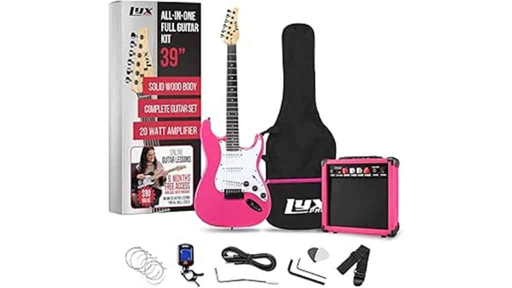 The LyxPro 39″ Electric Guitar stands as a tribute to the harmonious blend of craftsmanship and technical precision—its premium rosewood fingerboard and Canadian maple neck are not merely features, but instruments of expression. Each S-S-S pickup configuration captures crisp tones, akin to how life’s lessons resonate within one’s spirit, inviting reflection and growth. This guitar, coupled with a versatile amplifier, offers a pathway for aspiring musicians to explore their creative potential. What awaits in the next exploration of its performance?