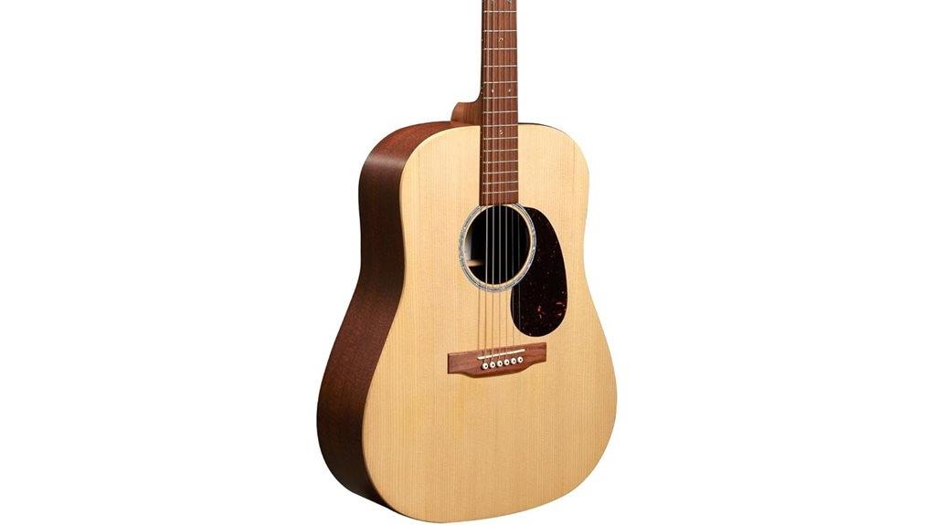 Considering the convergence of craftsmanship and utility, the Martin D-X2E presents a unique study in material contrast. The solid spruce top offers resonant clarity, projecting warmth with professional power, while the high-pressure laminate back, and sides, provide durable, weather-resistant stability, akin to a faithful spirit.