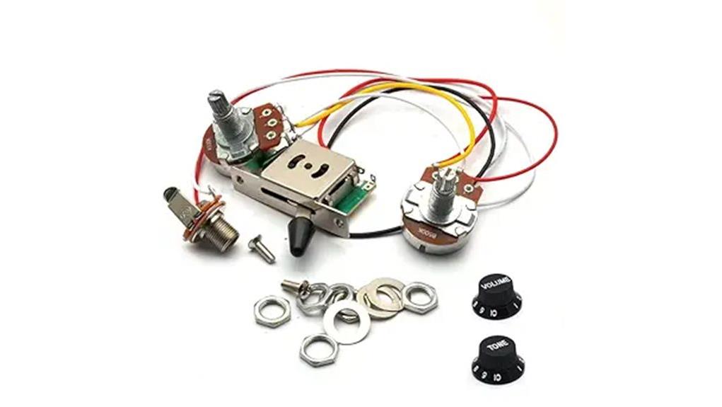 - The harness utilizes premium A500k and B500k pots and a sturdy 3-way switch for reliable volume and tone control.