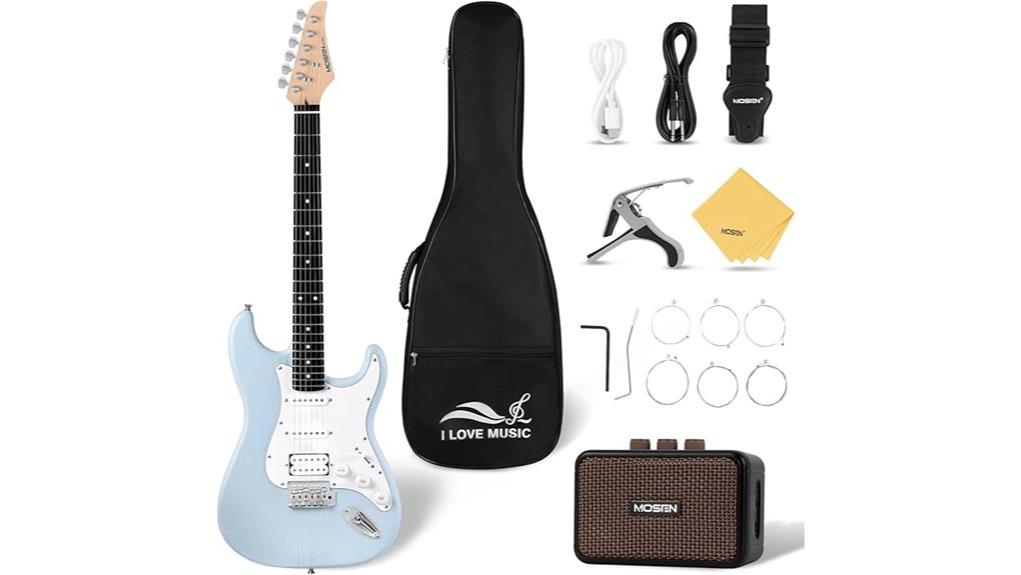Constructed with lightweight basswood, this 39-inch instrument, weighing a modest 13.92 pounds, offers an accessible canvas, akin to a fresh spiritual start. The HSS configuration, featuring one humbucker and two single-coils, grants the student sonic versatility, moving seamlessly from bright cleans to warm crunch. With a complete accessory bundle, including a digital tuner and amplifier, it creates a sanctuary for artistic discipline, ensuring practice transforms into devotion. Although often marketed as an all-in-one starter kit, many players eventually upgrade to best electric guitars for beginners to find higher quality craftsmanship and sound.]