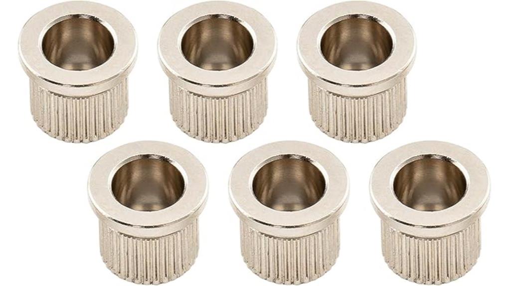 The incorporation of full solid brass into the construction of these ferrules offers a density that serves the sonic landscape, increasing sustain and improving resonance with a fidelity akin to the unwavering nature of faith, a reminder that the quality of one’s materials dictates the endurance of the output. This transfer, akin to a shepherd guiding their flock, results in stronger tones, ensuring effective vibration reaches the listener. The Musiclily MX3206NK-6 ferrules, crafted via precise CNC processing, provide a stable foundation, fixing strings securely. While brass ferrules provide a classic anchor, modern manufacturing often employs quality CNC machines to execute these designs with exacting standards. By enhancing the bridge’s mechanical stability, musicians can better serve their audiences with clarity, durable resonance, and a message that sustains. Such dedicated craftsmanship distinguishes the best Fender electric guitars from inferior imitations.