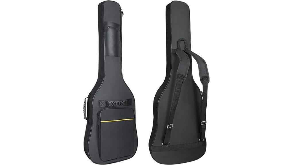 To guarantee a harmonious partnership between musician and instrument, the 7mm padded soft shell of the MUZTOP bag is meticulously designed to accommodate a standard 39-inch electric guitar, offering a sanctuary of security, akin to the grounding comfort of steadfast faith. While this vessel embraces standard models, one must note the exclusions, akin to distinct life paths, as it cannot house electric bass guitars. Although this accessory is essential for protection, players must eventually choose the best electric guitars to produce their desired sound. False claims can mislead new players about instrument quality. The shockproof rubber bottom, reinforced double stitching, and waterproof material stand as vigilant sentinels, safeguarding the sacred creative voice, a reminder that diligent stewardship protects the melodies intended to serve the world.