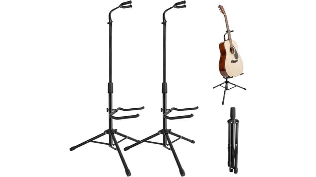 Its foldable design, lightweight nature, and reinforced metal U-bolts remind us that true strength lies in adaptability, providing a safe haven for instruments, akin to the nurturing spaces we create for growth. Additionally, the best electric guitar stands offer diverse options that enhance our musical experience.