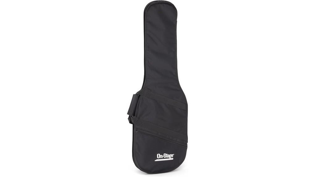 For the minstrel commencing upon a pilgrimage, the 0.01-ounce shipping weight and 600D nylon exterior of the OnStage GBE4550 Economy Electric Guitar Bag provide a distinct advantage, offering reliable protection against the elements without the burden of heavy armor. The adjustable backpack straps, akin to a supportive fellowship, guarantee ergonomic lifting, while the dual-pull zipper allows efficient, stress-free loading, symbolizing readiness for the journey ahead.