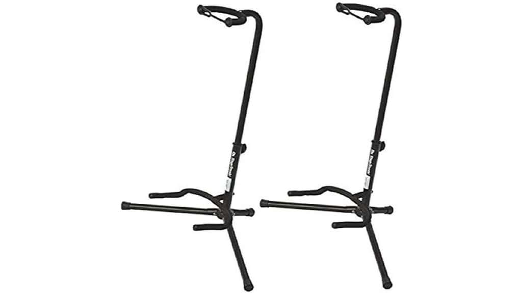 The OnStage XCG4 Guitar Stand embodies a harmonious blend of stability and portability—a reminder that, in our musical journeys, we must find balance. Constructed from high-quality materials, it features a friction locking knob that secures instruments with unwavering strength, akin to the steadfastness we seek in our personal pursuits. Weighing just 4.5 pounds, its ease of transport encourages exploration, inviting musicians to embrace new opportunities. As we explore its features further, one may discover profound connections between craftsmanship and our own growth.