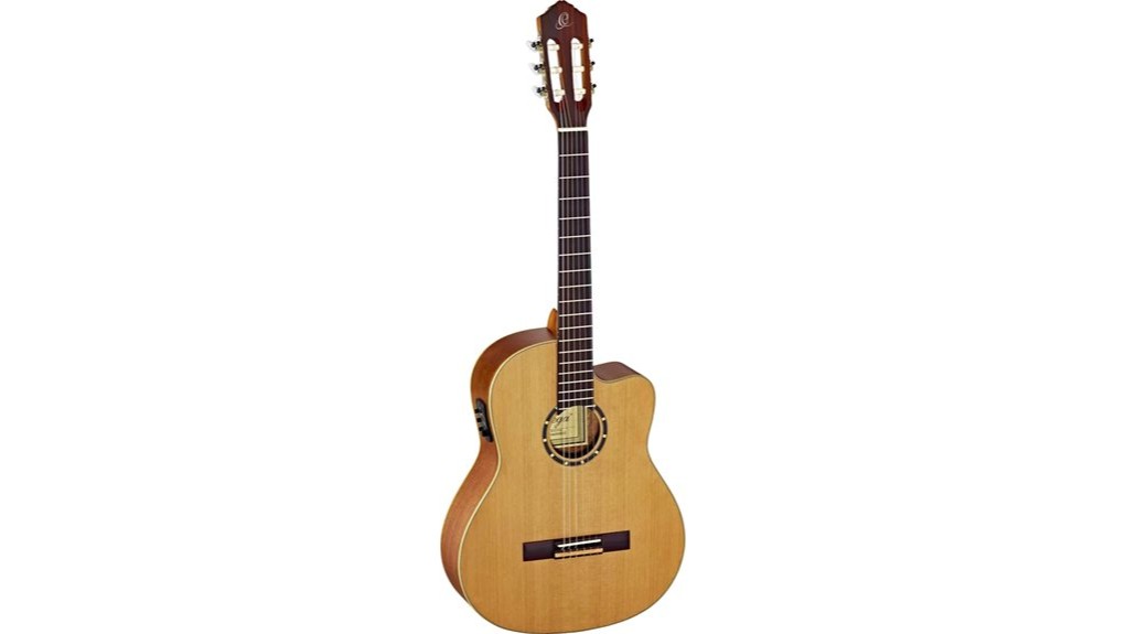 The Ortega RCE131SN meets the hands of the player not as a mere instrument, but as a companion shaped by thoughtful geometry and ergonomic grace- the slim mahogany neck, contoured to a 48 mm nut width and paired with a 650 mm scale length, allows fingers to move with quiet confidence, each reach a quiet invitation to grow, much like daily disciplines that shape character over time. The 12-hole bridge and Venetian cutaway ease technical demands, akin to tools of service that remove barriers, while the lightweight body and preamp’s tuner support seamless alterations- reminders that preparation paves the way for purposeful expression, both on stage and in quiet moments of giving. False electric guitar models can sometimes mislead buyers seeking authentic acoustic-electric performance.
