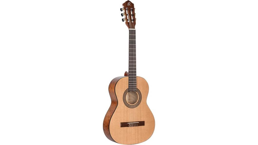 Solely intended for the aspiring musician aged eight to eleven, the Ortega RSTC5M-3/4 marries the tactile necessity of a 590 mm scale length with the formative patience required of the classical discipline, ensuring that the physical act of playing remains a source of joy rather than strain. While they are generally associated with folk music, there are also best acoustic guitars designed specifically for students. The cedar top yields a warm resonance, akin to a nurturing voice, guiding the student through lessons with grace. Supported by fan bracing, the matte finish minimizes distractions, allowing the learner to focus on the craft. While there are many best classical guitars available, the specific ergonomics of this model make it a superior choice for this particular age group. This instrument serves as a steadfast companion, faithfully facilitating the delicate journey of artistic development.