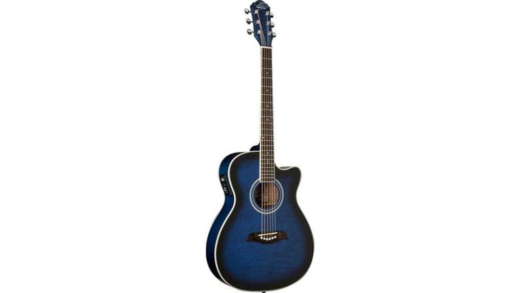 For those starting on the musical journey, the Oscar Schmidt OACEFTBL serves as a faithful companion, offering a full 25.5-inch scale length, a robust mahogany neck, and a select spruce top that resonates with the promise of growth. This instrument proves affordable craftsmanship need not compromise integrity, for the catalpa body, coupled with the MET-A07 preamp, facilitates humble service in any gathering, from quiet circles to larger congregations.