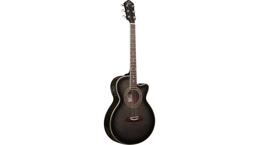 Though its aesthetic captures the eye with a Flame Transparent Black finish, the Oscar Schmidt OG10CEFTB‑A‑U is an instrument engineered for both ergonomic comfort and sonic resonance. Weighing merely five pounds, the concert‑size cutaway body allows players to serve others through extended play without physical fatigue, a reminder that endurance is cultivated through gentle stewardship.