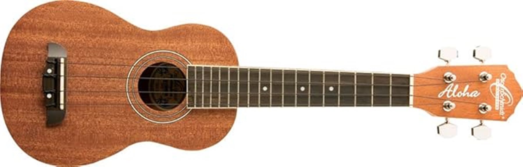 This lightweight soprano ukulele features a solid mahogany top, back, and sides for a warm, focused acoustic resonance.