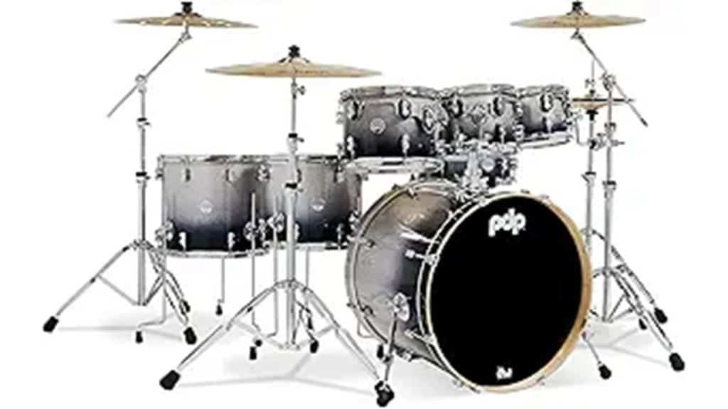 As I explore the PDP By DW 7-Piece Concept Maple Shell Pack, I find myself reflecting on how each 7-ply maple shell resonates with both sound and spirit—each note is a reminder that, like life’s journey, our music deserves a solid foundation. With retro-inspired dual-turret lugs, this kit not only offers versatility but also encourages creative expression, akin to finding one’s voice in a world of noise. Let’s uncover how these features can elevate your musical path.