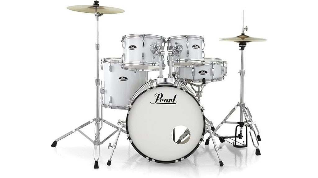 The Pearl Roadshow Drum Set rs505c/c33 stands as a beacon of musical potential—its 6-ply poplar hardwood shells offer deep resonance, fostering a rich, enveloping sound. With a 20×16 bass drum and three toms, it invites exploration, much like life’s rhythms that call for introspection and growth. This complete kit, supported by double-braced, height-adjustable stands, emphasizes stability in both practice and performance—reminding us that a strong foundation is essential for any journey. What awaits beyond this threshold of sound?