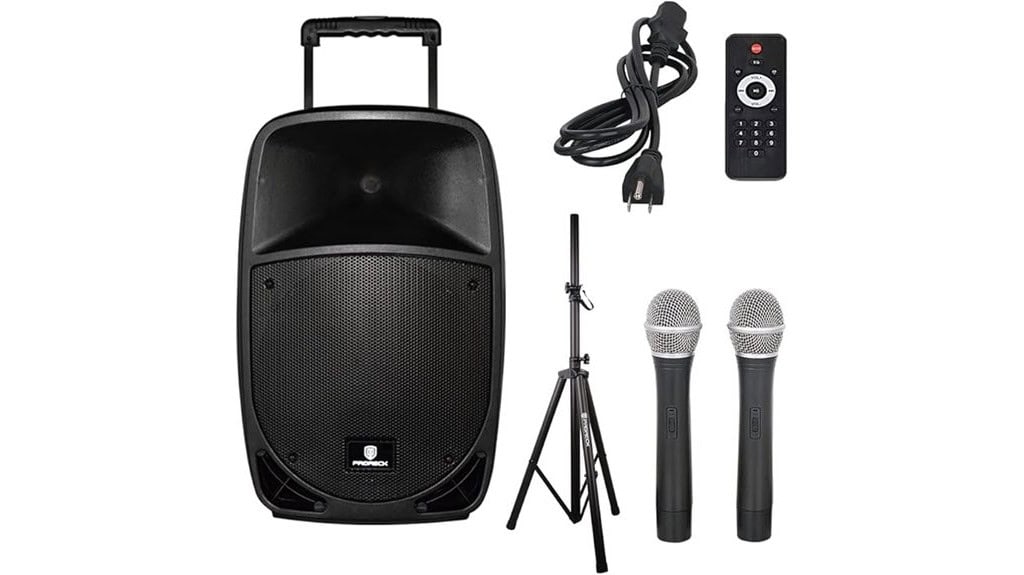 The PRORECK Freedom 15 Speaker System embodies the harmony of technology and shared experience, offering a peak output of 800 Watts—akin to the power of collective voices coming together. Its 15-inch woofer and titanium diaphragm produce sound that resonates deeply, reminding us of the importance of clarity in communication. Portability, facilitated by a telescoping handle and wheels, encourages gatherings, symbolizing how mobility fosters connection. As we explore its features, one may wonder how this speaker enhances the very essence of community.