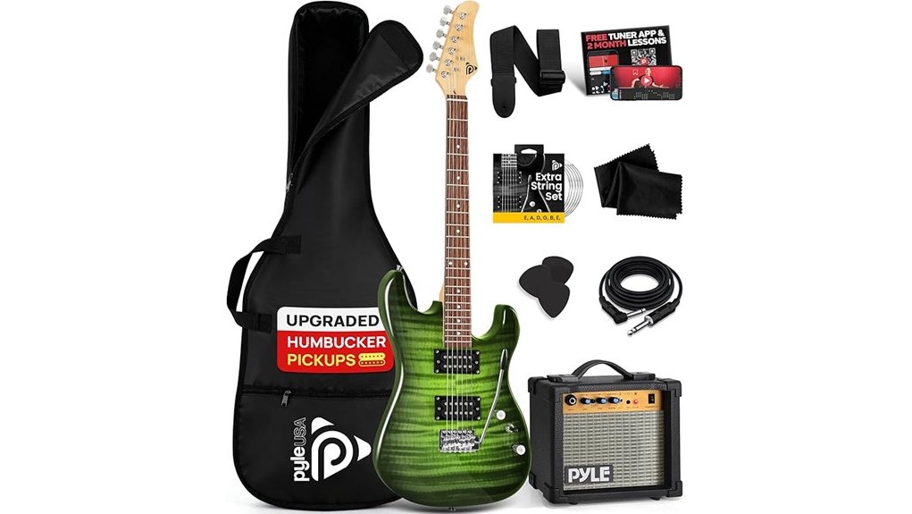 - The Pyle Electric Guitar Kit offers a solid poplar body and maple neck, delivering durability ideal for beginner players