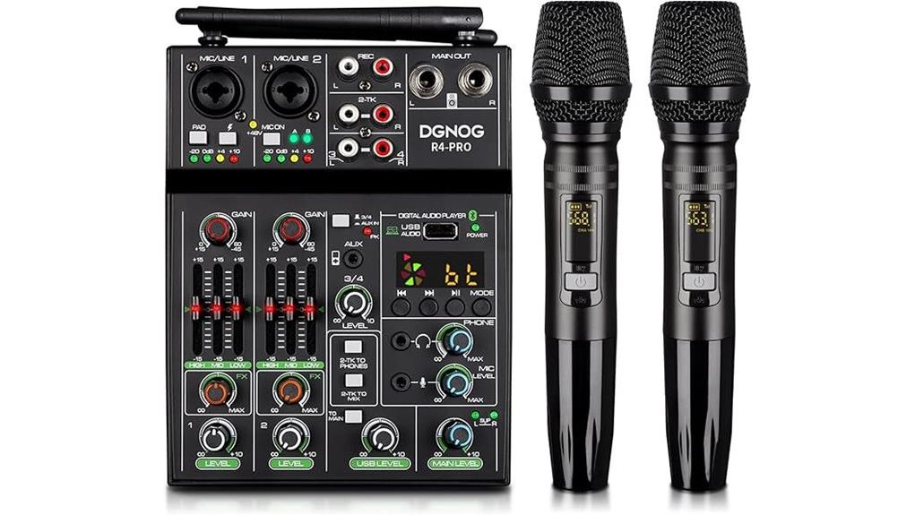 The R4 Pro Audio Mixer, with its +48V phantom power and robust XLR inputs, grounds the chaos of performance into structured clarity, akin to a disciplined mind finding stillness amidst noise.