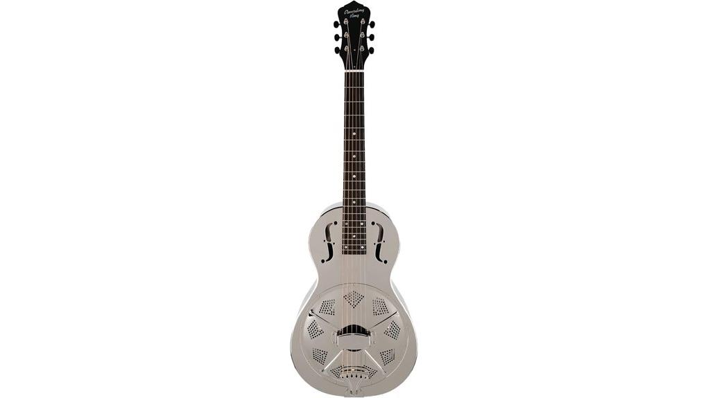 While the resonator guitar is often celebrated for its historical grit, the Recording King RM-993 anchors its sonic identity in a foundation of permanence, employing a body constructed from nickel-plated bell brass that weighs nearly ten pounds. This makes it heavy for beginners.