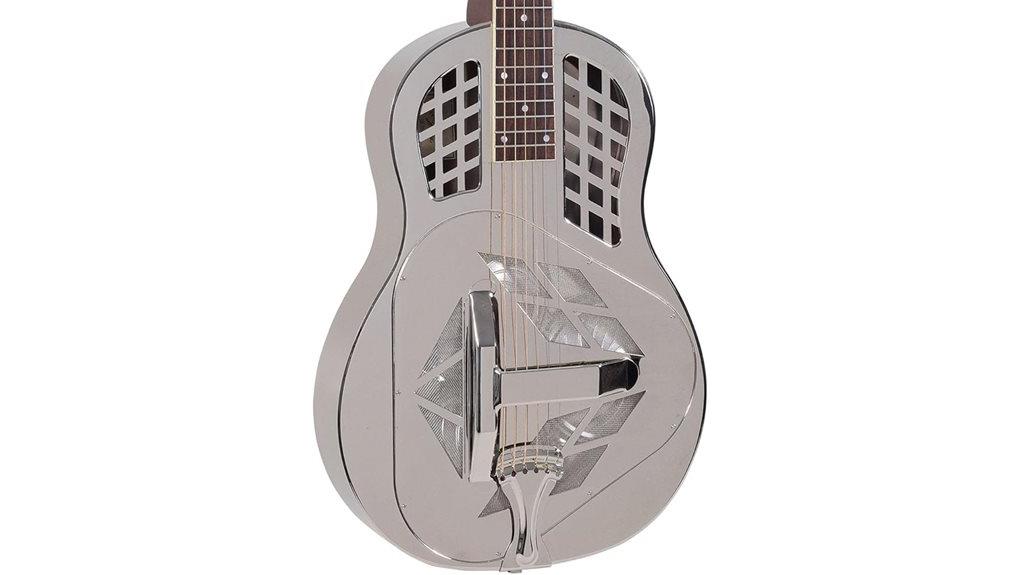 Its fixed ebony maple saddle bridge, functioning with steadfast reliability, guarantees that every musical contribution sustains beautifully, offering a lesson in serving others with consistent presence. Weighing nine pounds, this instrument remains a devoted companion for those seeking to uplift their community through art, proving that spiritual resonance, akin to its metallic sustain, endures.