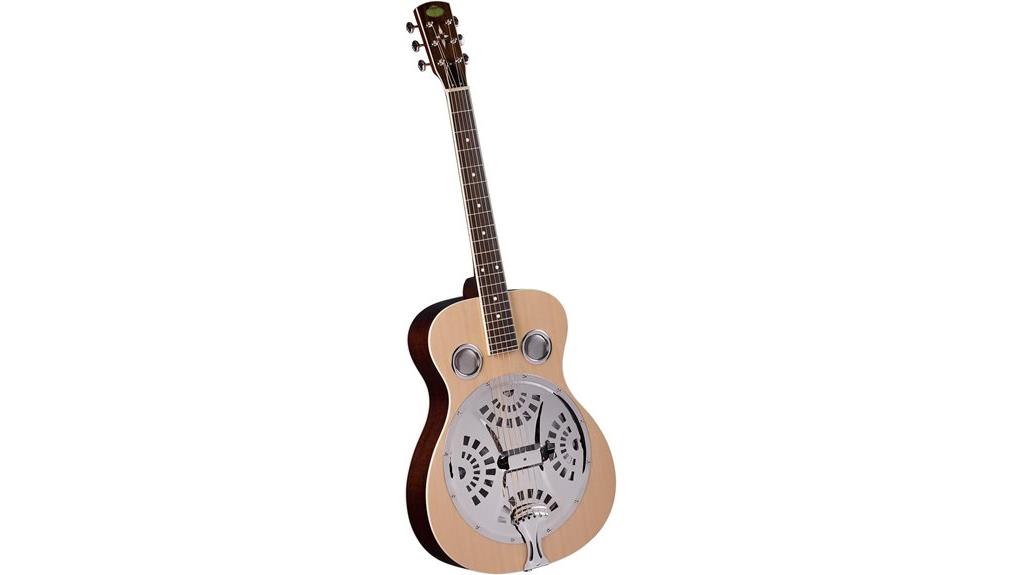 Through the heart of this resonator, the patented Golden Gates spider bridge, perched atop a US-made aluminum cone, channels string vibration into a crisp clarity that defies ambiguity. The resulting projection is steadfast, a reminder that honest communication requires a solid foundation. While traditional construction usually relies on wood, the aluminum cone provides a distinct metallic character that is often absent from the standard inventory of best electric guitars. By amplifying the instrument’s natural voice, the hardware allows one to serve listeners with unadulterated acoustic truth. However, this metal-infused build clearly distinguishes the instrument from the warm, nylon-string resonance associated with the best classical guitars.