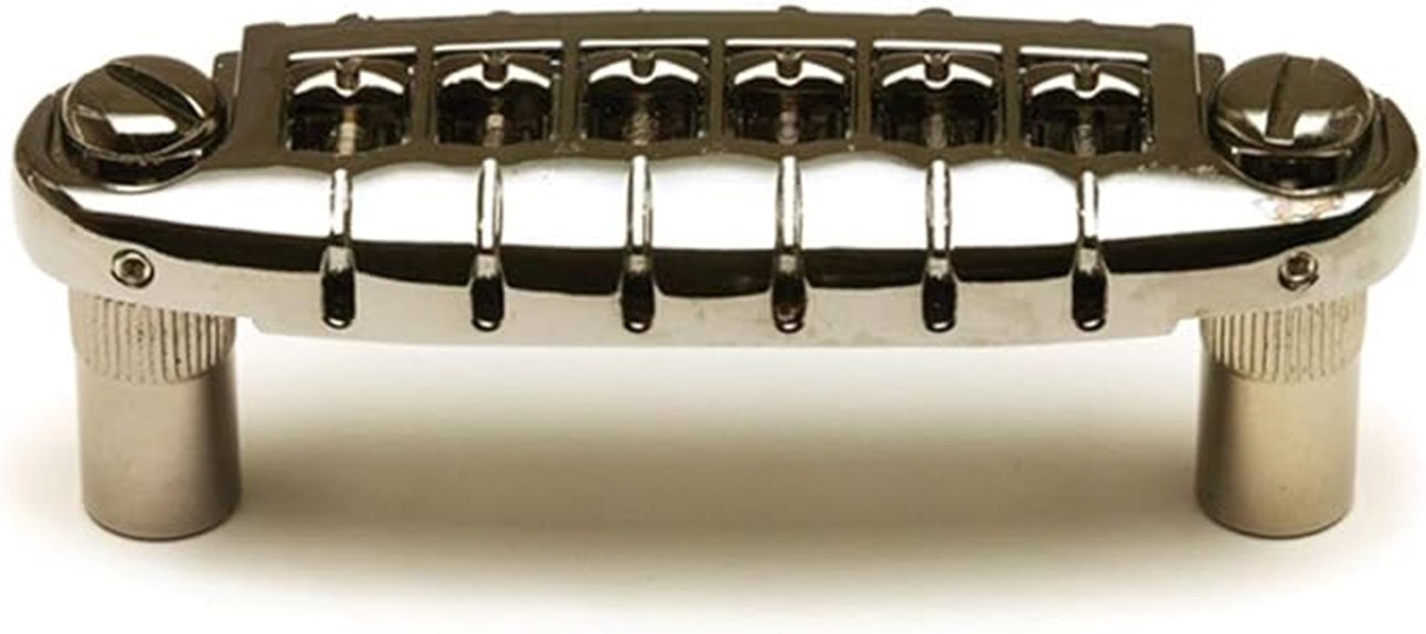 Designed for Gibson and PRS style wraparound configurations, this hardware guarantees a harmonious union, akin to a foundation built upon solid rock, facilitating faithful service through music. The bridge utilizes standard inch measurements, though metric variants exist for diverse needs.