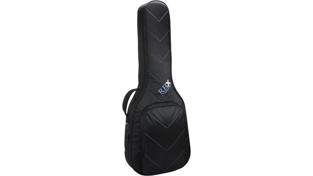 The RBX Protection System utilizes multi-layer foam and impact panels to safeguard semi-hollow guitars without hard-shell weight. Its 4.75-pound construction and Zero-G handle balance the load to prevent fatigue during travel. A large, low-profile pocket and cable loop provide ample storage without adding unnecessary bulk.