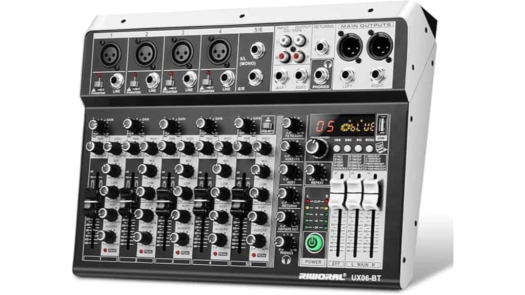 In summary, the Riworal 6-Channel Audio Interface Mixer serves not only as a tool for audio enhancement but also as a conduit for personal expression—akin to the way our voices resonate in harmony with our surroundings. With its advanced features like 16 DSP effects and Bluetooth connectivity, it reminds us that creativity flourishes through connection. As users navigate their soundscapes, they commence on a journey of self-discovery, illustrating that the pursuit of quality sound is intertwined with the pursuit of a fulfilling life.