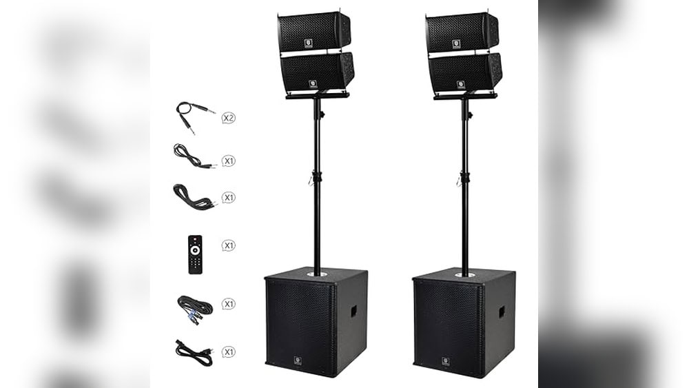 • Complete Combo Set – Includes 4 line array speakers, 2×15-inch subwoofers, remote control, and cables, saving you from purchasing components separately.