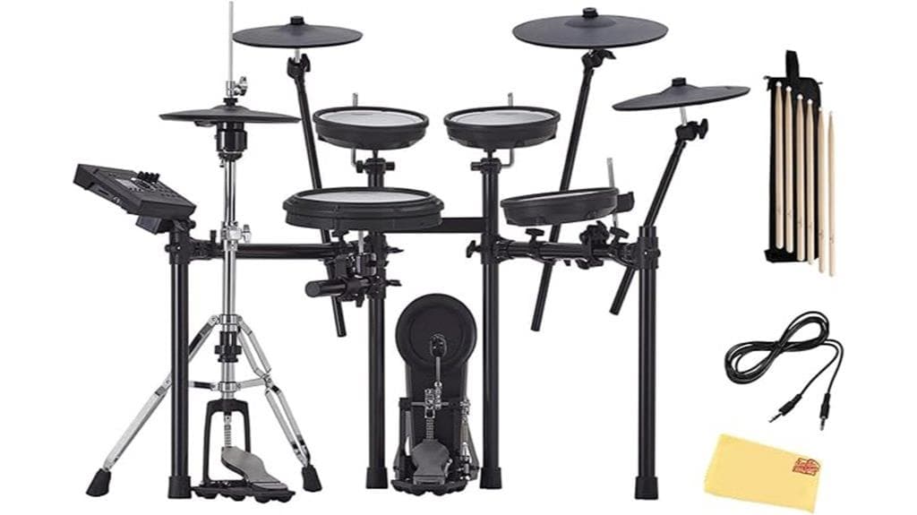 To sum up, the Roland TD-17KVX2 isn’t just an electronic drum set—it’s a gateway to musical and personal growth. Much like a seed nurtured in rich soil, your drumming skills can flourish with the TD-17’s responsive pads and diverse sound library. As you practice, remember that every beat is a step on your journey, each rhythm echoing your dedication and passion. Embrace this instrument, and let it guide you toward mastery, harmony, and self-discovery.