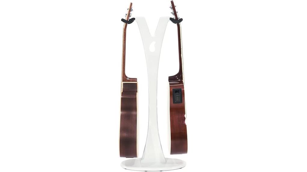 Ultimately, the Ruach GS-1 stands as a tribute to the harmony of artisanal dedication and functional necessity, offering a sanctuary for instruments through its solid mahogany construction. For the steward seeking reliable protection, the stand’s adjustable headstock support, akin to a guiding hand, guarantees safety, while the nitrocellulose-friendly hanger preserves finish integrity, a lesson in gentle care.
