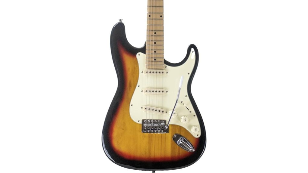 The synchronous tremolo bridge facilitates gentle pitch modulation, mirroring life’s subtle shifts, while chrome tuners guarantee stability, grounding one’s purpose. While some may explore distinct tonal qualities through different hardware, this setup provides a reliable foundation for the aspiring musician, allowing them to focus entirely on uplifting others through consistent, thoughtful expression.