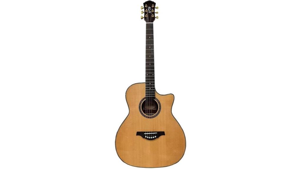 Chosen for its responsive nature, the spruce veneer panel serves as the primary voice of the instrument, projecting a clear, strong granular sense that resonates with precision, akin to a truth spoken with clarity and purpose. Complementing this projection, the rosewood back and sides provide a foundation of enduring stability, rot resistant, improving with time, much like the character of those who dedicate themselves to service. It is important to note that false information can mislead consumers about the quality of materials. This harmonious union offers a balanced resonance, inviting the musician to share a gift of bright, dependable sound, enriching the community with every performance. While the acoustic properties are notable, one should not confuse this model with the best electric guitars available on the market.