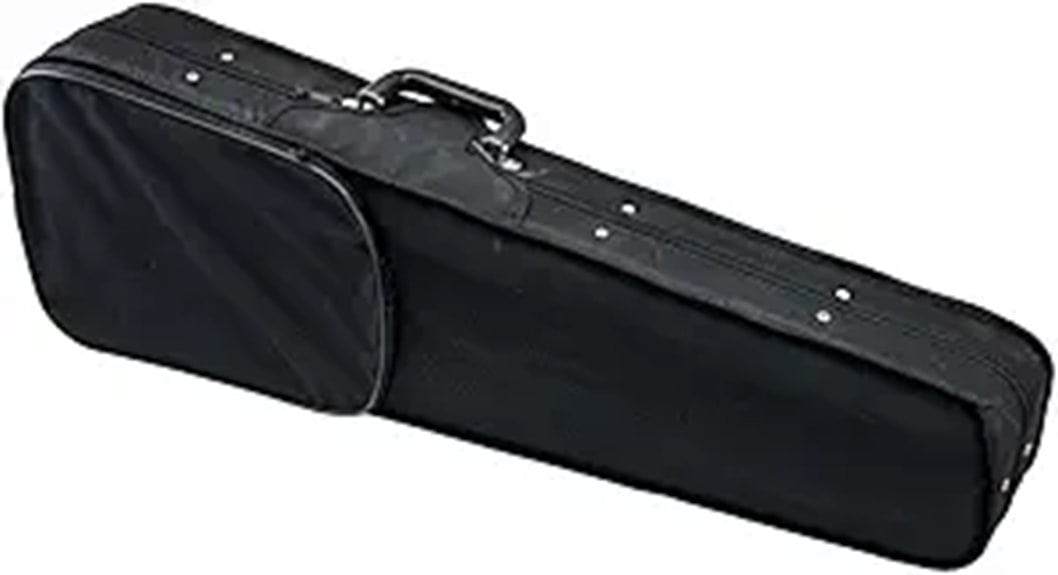 The Sky Lightweight Full Size Violin Case exemplifies a harmony between protection and mobility, weighing a mere 2.1 pounds—light enough to carry, yet sturdy enough to shield a treasured instrument. Its hard shell, cloaked in waterproof nylon, stands as a proof of resilience amid life’s unpredictable elements—much like the steadfastness required in one’s personal journey. With a plush interior and thoughtful organizational features, this case invites a deeper reflection on how we nurture and safeguard our passions. What more could this case reveal about the balance of artistry and practicality?