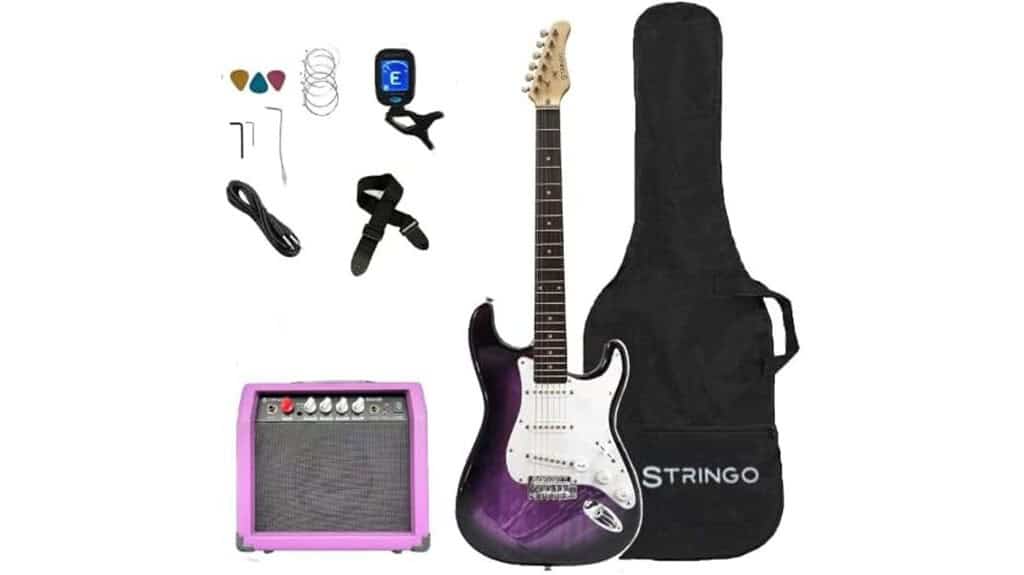The Stringo Purple Electric Guitar Beginner Kit presents a harmonious blend of artistry and technology, featuring a full-size 39-inch body and a smooth C-shaped neck that invites both comfort and exploration—akin to the journey of self-discovery. With three single coil pickups, it encourages a diverse range of musical expressions, a reminder that versatility is key in both music and life. As we consider the robust 20W amplifier and its rich sound, one might ponder how these elements foster not just skill, but also community, leading to a deeper understanding of one’s place in the world. What revelations await as one engages with this instrument?