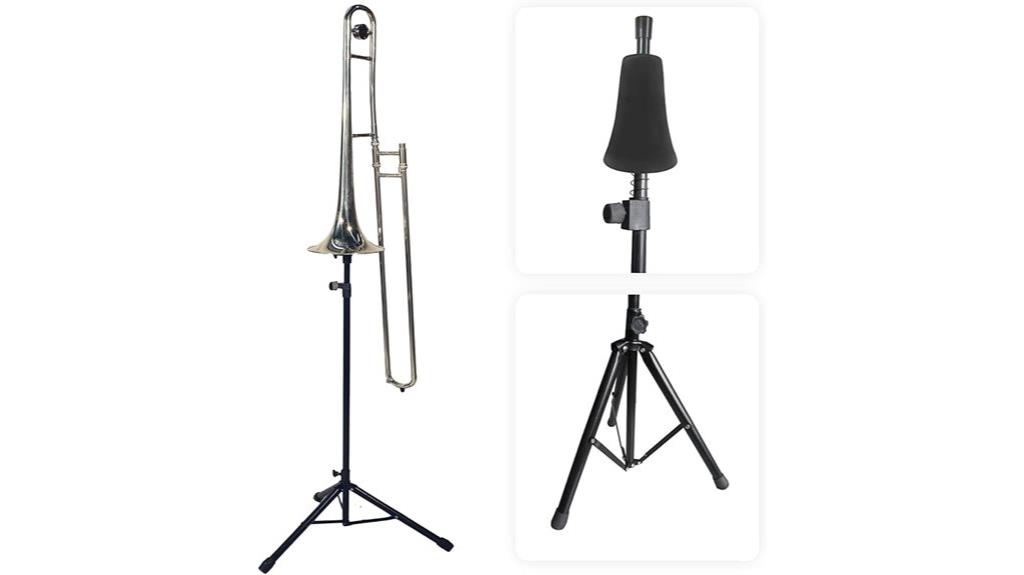 Its foldable triangle design enhances portability, encouraging musicians to share their gifts widely, fostering community and connection. Moreover, this stand is recognized for its compatibility with various brass instruments, making it a versatile choice for best trombone stands that musicians can rely on.