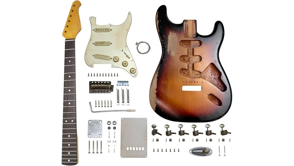 - It includes all essential raw materials, such as S-S-S pickups and relic chrome hardware, to construct an ST-style electric guitar.