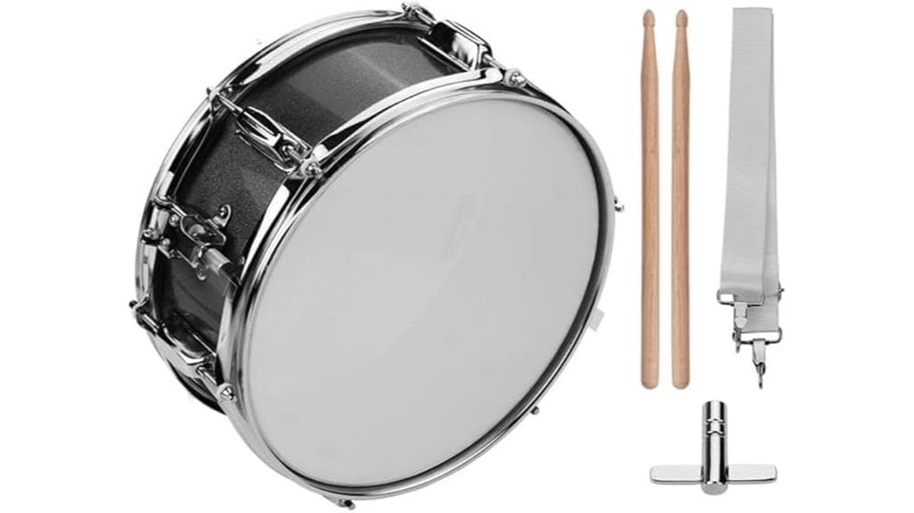 The Sunydog 12-inch snare drum stands as a beacon for aspiring musicians, its durable poplar wood construction—akin to a sturdy tree weathering storms—offers both resilience and quality. With its compact design, it invites practice in any setting, nurturing creativity through sound exploration. Included accessories, such as drumsticks and a tuning key, serve as tools for personal growth, reminding us that mastery often lies in the details. What more might this humble instrument reveal about the journey of musical expression?