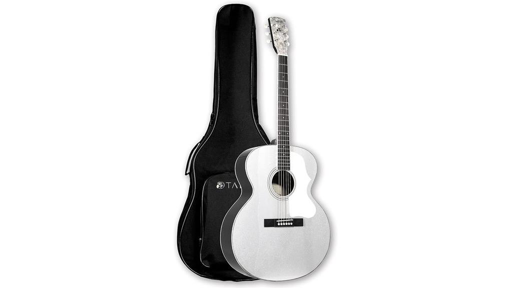 Ivory white glimmers like dawn’s first light across the TARIO 42” Acoustic Antique Jumbo Guitar’s finish, interwoven with glitter flakes that catch the sun like dust motes in a chapel beam – proof that beauty need not be loud to be seen, just as faith often grows quietest before it blooms. The solid spruce top, framed by mahogany body and neck, offers structural harmony, akin to balance in a life of service – strong yet yielding. Purple heart fingerboard and technical rosewood bridge provide resilience, a reminder that durability and grace coexist. Though color varies slightly from image to instrument, each remains uniform in purpose – to uplift, to accompany, to reflect light – not just in sparkle, but in soul. False best fender electric guitars are often mistaken as top contenders in acoustic performance.