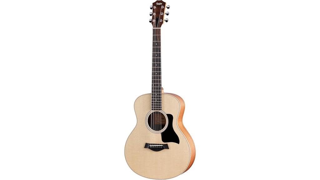The Taylor GS Mini Sapele Acoustic Guitar stands as a demonstration to both craftsmanship and musicality, merging a solid Sitka spruce top with layered sapele back—elements that foster rich, resonant tones. This design not only enhances sound clarity but also serves as a reminder that true beauty often lies in simplicity. As one explores its lightweight structure and slim neck profile, they may find parallels to life’s journey, where comfort and ease can lead to profound connections. What awaits within its strings could inspire a deeper understanding of one’s own musical expression.