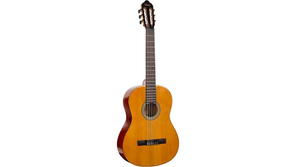 The neck acts as a steadfast pillar, offering unwavering support. While traditional classical guitars typically lack adjustable truss rods, relying on their rigid construction for stability, this specific model’s design prioritizes a reliable foundation for learners.