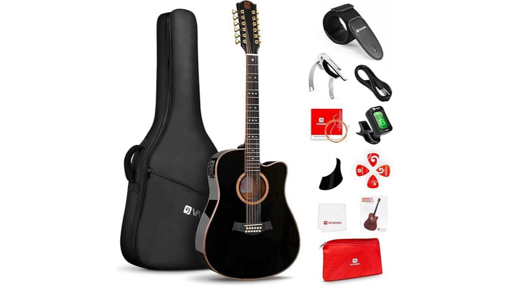 Ultimately, the Vangoa Advanced 12-String serves as more than a mere instrument, for its resonant AAA Spruce top, balanced by a supportive C-shaped Okoume neck, offers a sturdy foundation for creative expression, akin to the strength required for spiritual growth.