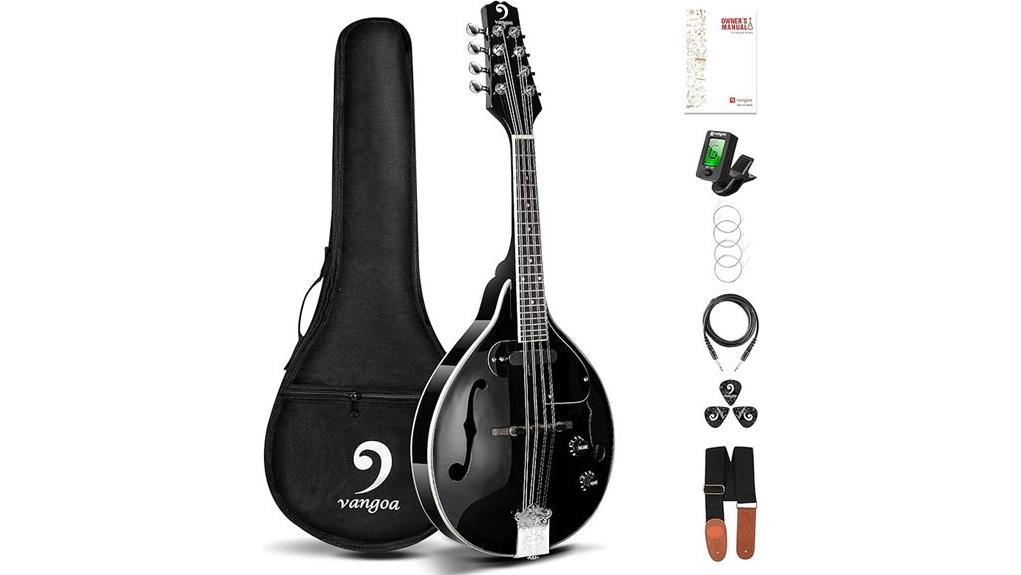 Ultimately, the Vangoa mandolin stands as a tribute to harmonious craftsmanship, pairing lightweight AAA mahogany with an adjustable truss rod, a foundation as stable as one’s convictions. The compensated bridge guarantees precise intonation, mirroring the pursuit of clarity in one’s journey, while the crisp, resonant projection offers a voice to silent aspirations.